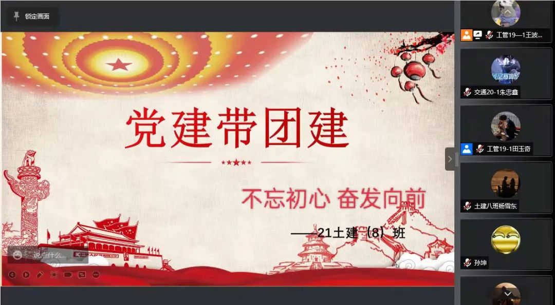 学生第二党支部在管科、土建团支部组织开展了以“不忘初心,奋发向前”为主题的“党建带团建”活动。其中,4月21日15:00,党员杨佳慧、郭鑫同志于腾讯会议为21级管理二班团支部开展此项活动;4月22日16:30,党员田玉奇、王波同志于腾讯会议为21级土建八班团支部开展此项活动。