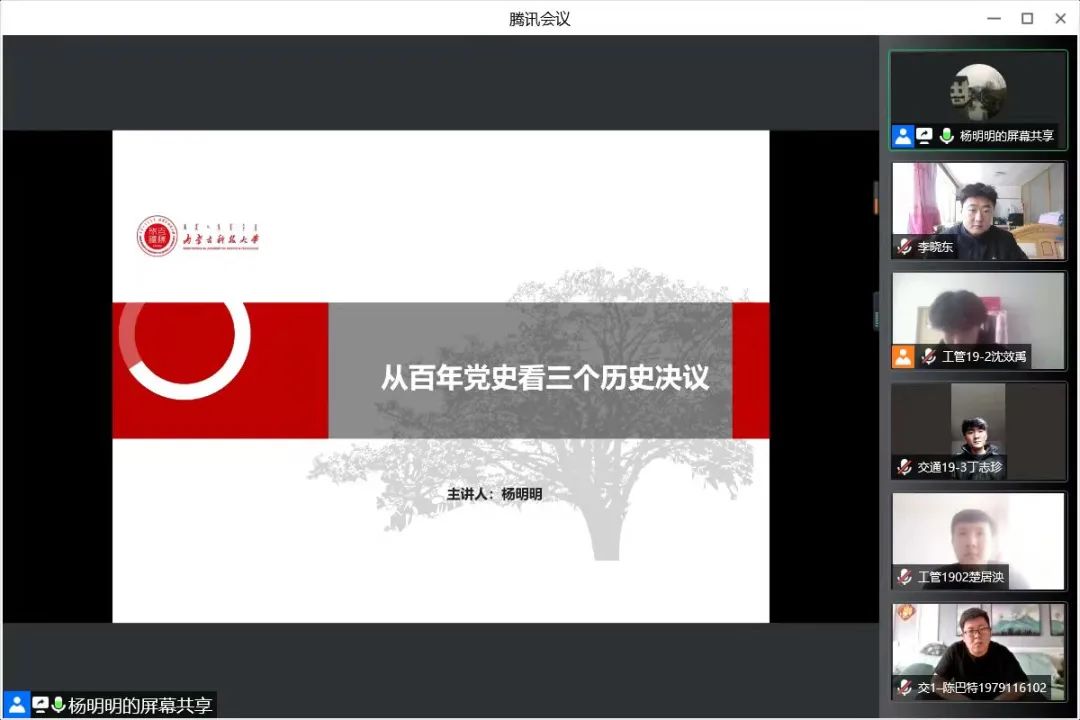学生第二党支部通过腾讯会议的方式开展了以“从百年党史看三个历史决议”为主题的党课学习。本次党课由支部书记杨明明老师进行讲解,参加本次党课学习的有二支部全体党员。