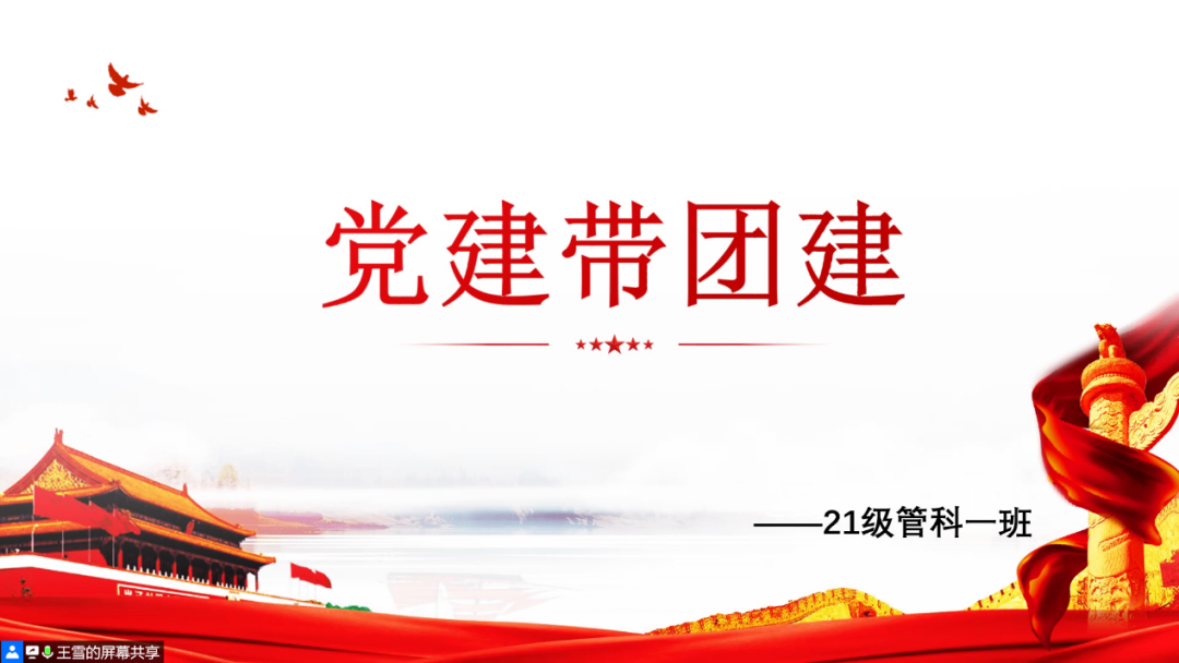 学生第二党支部在管科、土建团支部组织开展了“党建带团建”主题活动。其中,3月24日14:55,党员王雪、时晓旭同志于腾讯会议为21级管理一班团支部开展此项活动;3月25日19:40,党员王启、陈巴特同志于腾讯会议为21级土建七班团支部开展此项活动。