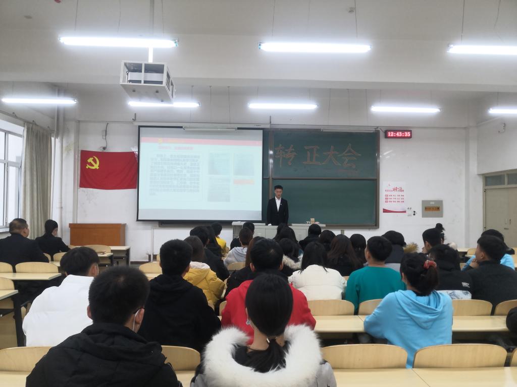 学生第三党支部在逸夫楼G104举行预备党员转正大会,参加本次会议的有支部书记崔岩老师和全体党员。