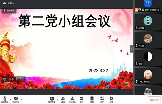 吴宇升同志从三个方面进行阐述: 首先,此次会议为新学期的第一次党小组会议,由于疫情原因只能以线上的方式进行。第二,强调现在的疫情比较严重,注意做好个人防护,尤其在做志愿活动的同时更要做好自身的保护措施。第三,关于党小组工作,由于开学日期无法确定,党小组工作需要在线上进行,主要是后续发展的相关事宜,即本检查本批发展对象的思想汇报以及其它文件的查阅,希望党员同志能够相互联系、相互配合,对党小组下发的工作积极完成。