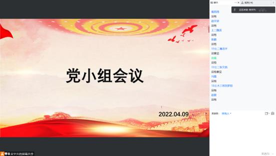 吴宇升同志首先提到这次换届大会本小组吴宇升同志和赵毅同志进行参选,并在小组内进行投票,全员通过。其次是关于换届大会的各种注意事项,换届大会一定要按时到场;注意自己是否有投票权;认真阅读了解工作条例。赵毅同志也着重强调了换届大会的注意事项和会议要求。第二点,关于党小组工作,对本批发展对象各项工作,希望党员同志能够相互联系配合,对党小组下发的工作积极完成。第三点,强调现在的疫情仍然比较严重,一定要注意好个人防护。