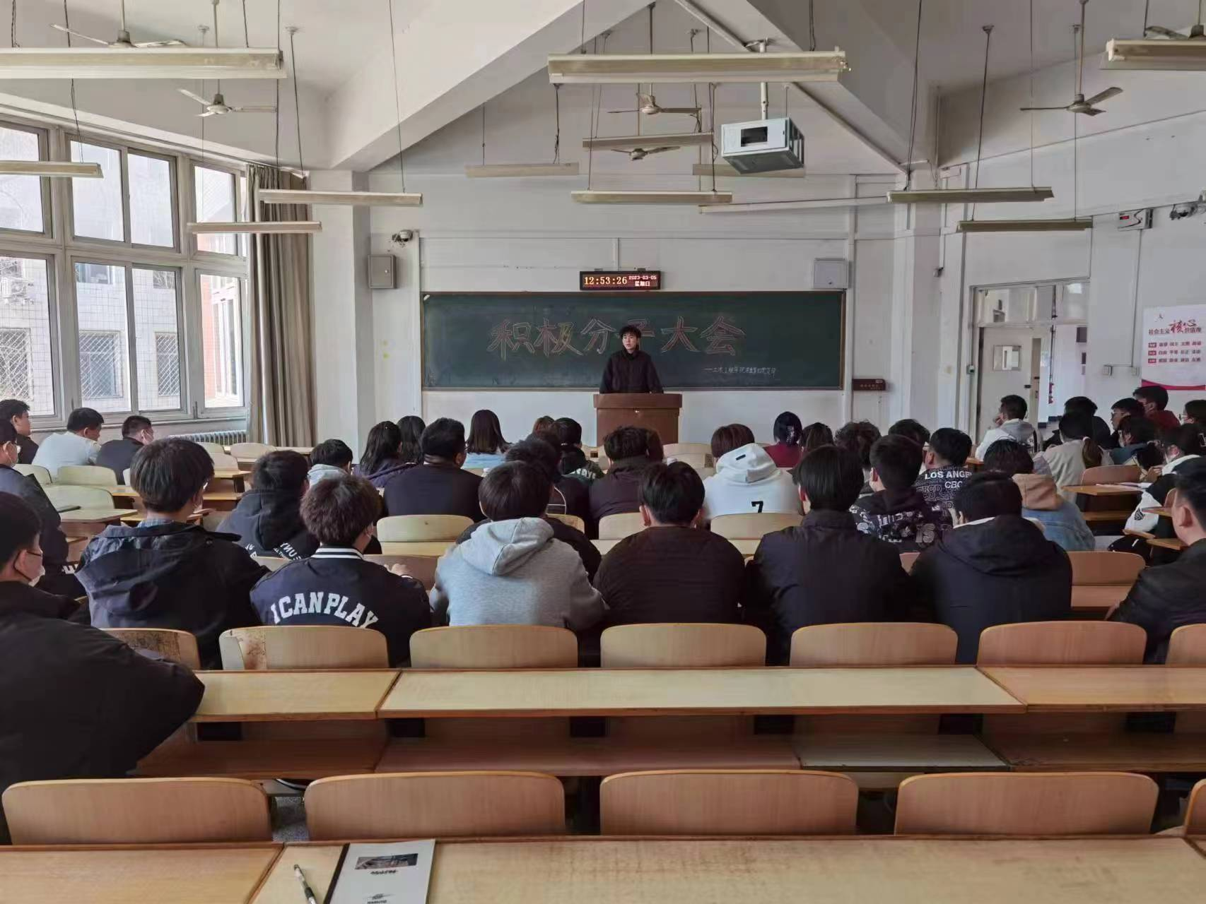 学生第四党支部于二教A101召开了积极分子大会。参加本次会议的有四支部党员和积极分子,本次会议的主持人是党员沈效禹同志。