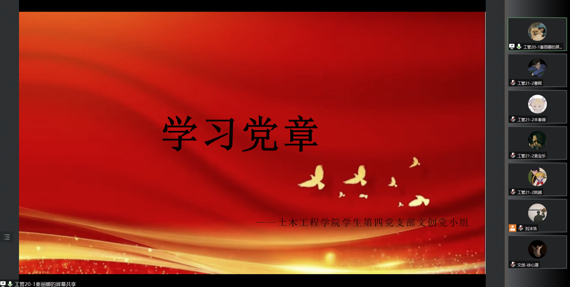 学生第四党支部于腾讯会议开展了以“中国共产党章程”为主题的学习。参加本次学习的有四支部全体党员和积极分子。