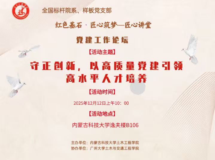,成功举办“红色基石·匠心筑梦——匠心讲堂”党建工作论坛。本次论坛以“守正创新,以高质量党建引领高水平人才培养”为核心主题,旨在搭建校际党建交流平台,共话新时代土木类专业人才培养新策略。