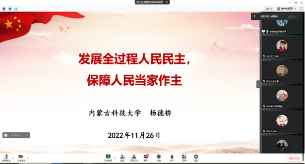 杨德桥教授为青马班学员带来题为“发展全过程人民民主 保障人民当家作主”专题讲座。