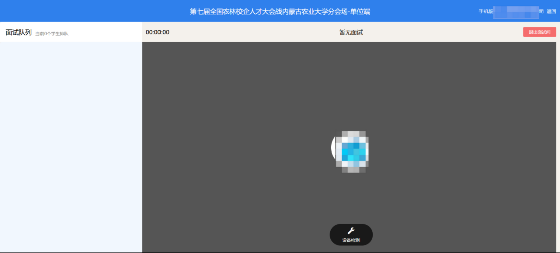 勾选有意向的学生后,点击【批量面试邀请】,可批量给学生发送短信或邮件,邀请学生进行线上和线下面试。邀请学生进行视频面试后,点击【招聘管理】—【面试管理】—【洽谈面试大厅】,单位可与学生进行洽谈和面试。