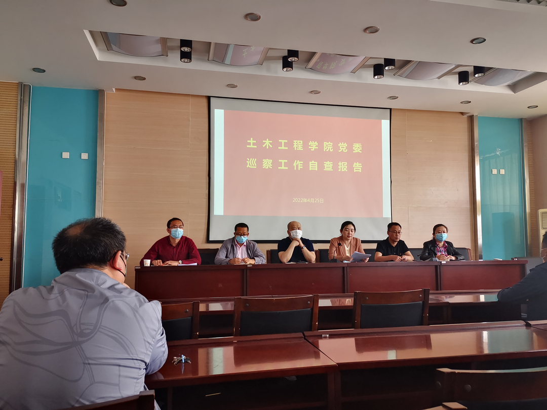 按照巡察工作安排,十博体育 党委于2022年4月25日上午10:30在逸夫楼B404向第三巡察组汇报自查和整改情况。第三巡察组组长杨海燕、巡察组成员刘小宝、冀兰、李革,土木10BET 干部、各支部书记、教授委员会委员参加会议。