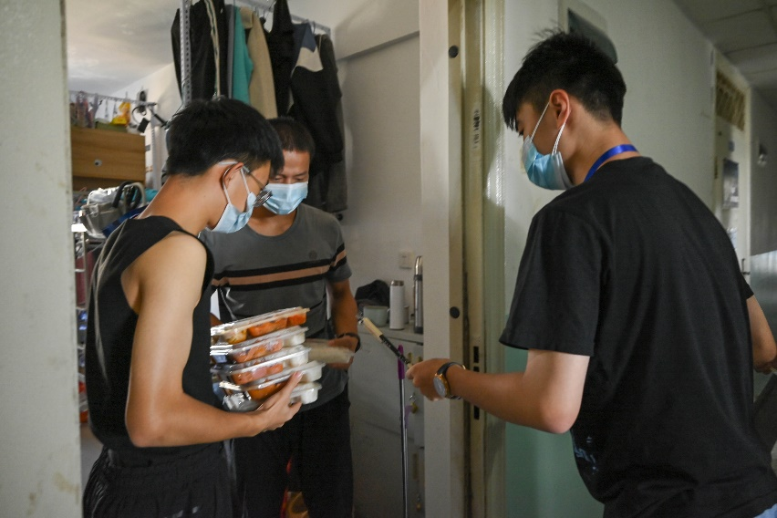 郎福同志担任,主要工作是配合分管老师与本楼层志愿者们每天早上准时集合,开始当天的防控疫情工作。组织同学们,有序进行核酸采集工作。核酸采集完后便开始筹备同学们的早、午、晚饭,以及管理同学们有序保持静默状态。责处理同学们的生活问题。