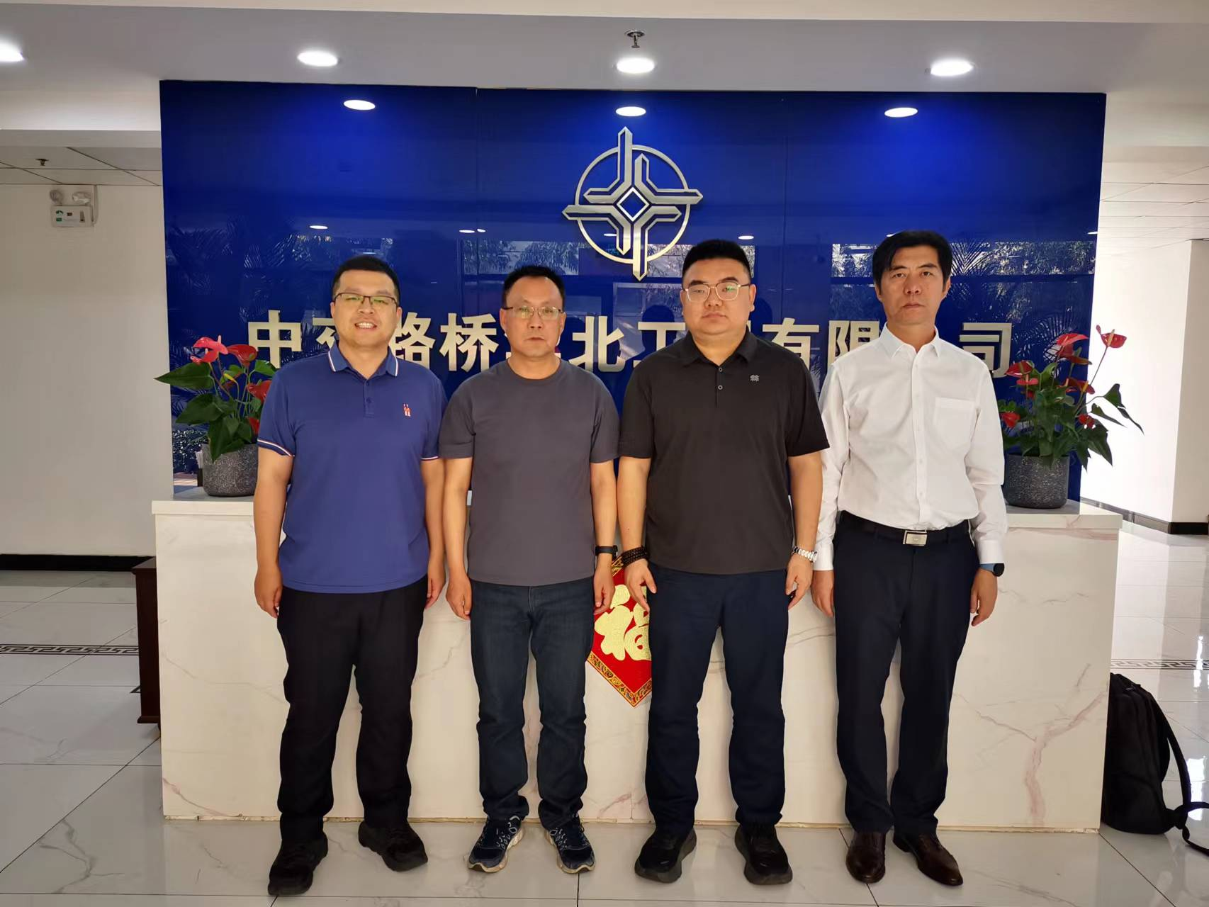 与中铁二十一局集团道桥公司人力资源部副部长李明、校友安东东等人进行座谈