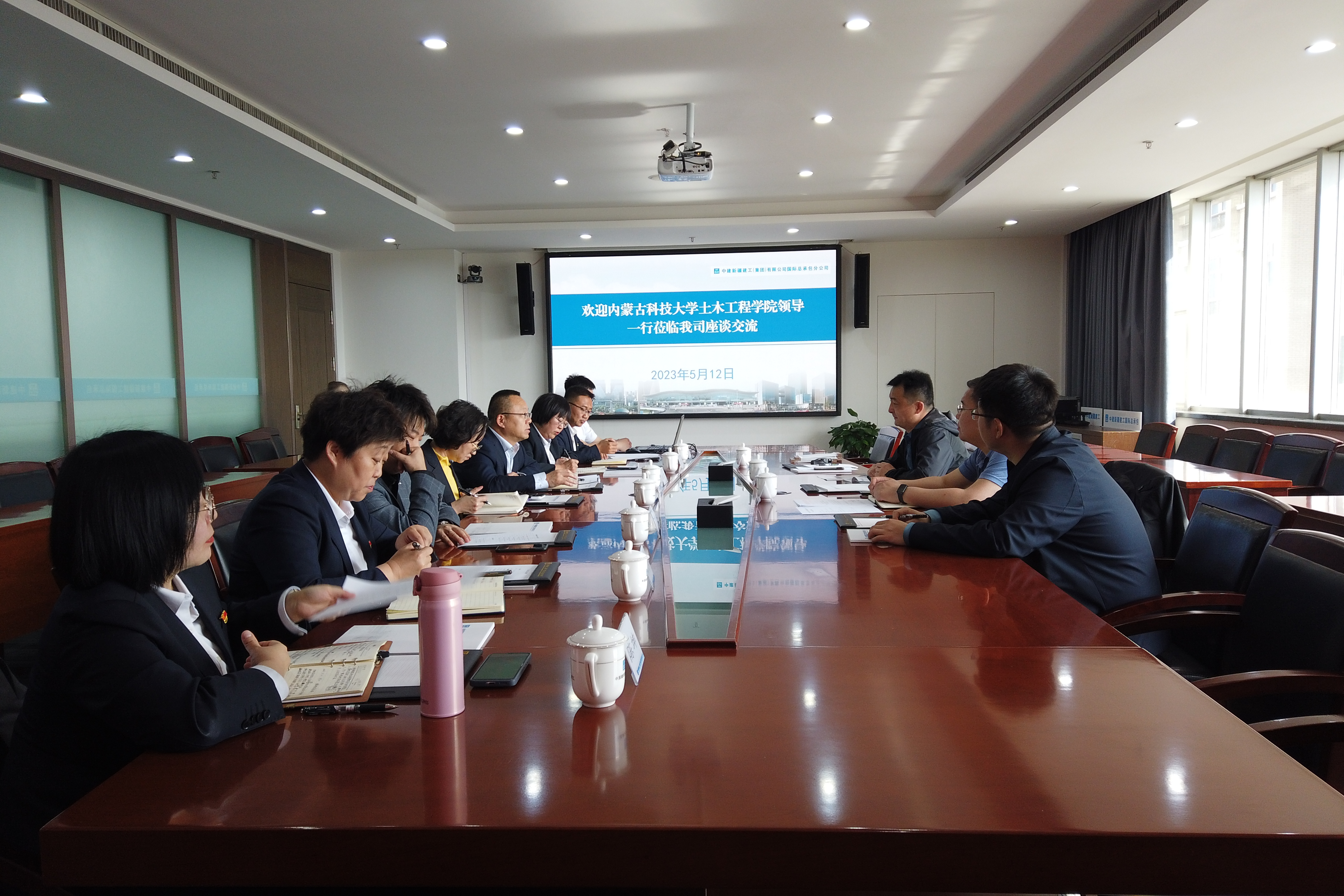 与中建新疆集团一公司堂悦小区项目班子进行座谈并与毕业生校友进行交流