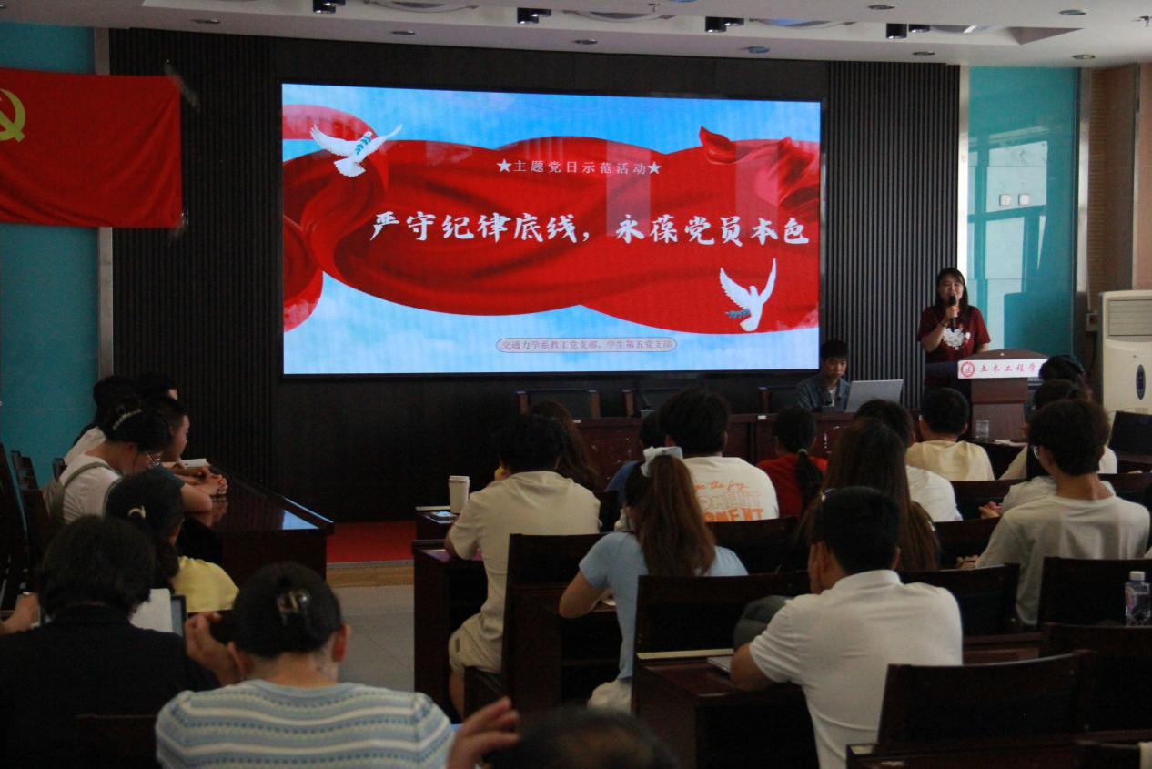 党委的指导下,交通力学系教工党支部联合学生第五党支部于2024年7月1日下午3点,在逸夫楼B404举办了“严守纪律底线,永葆党员本色”主题党日示范活动。校内基层党组织代表观摩了此次活动。活动由交通力学系教工党支部书记张新洁同志主持。