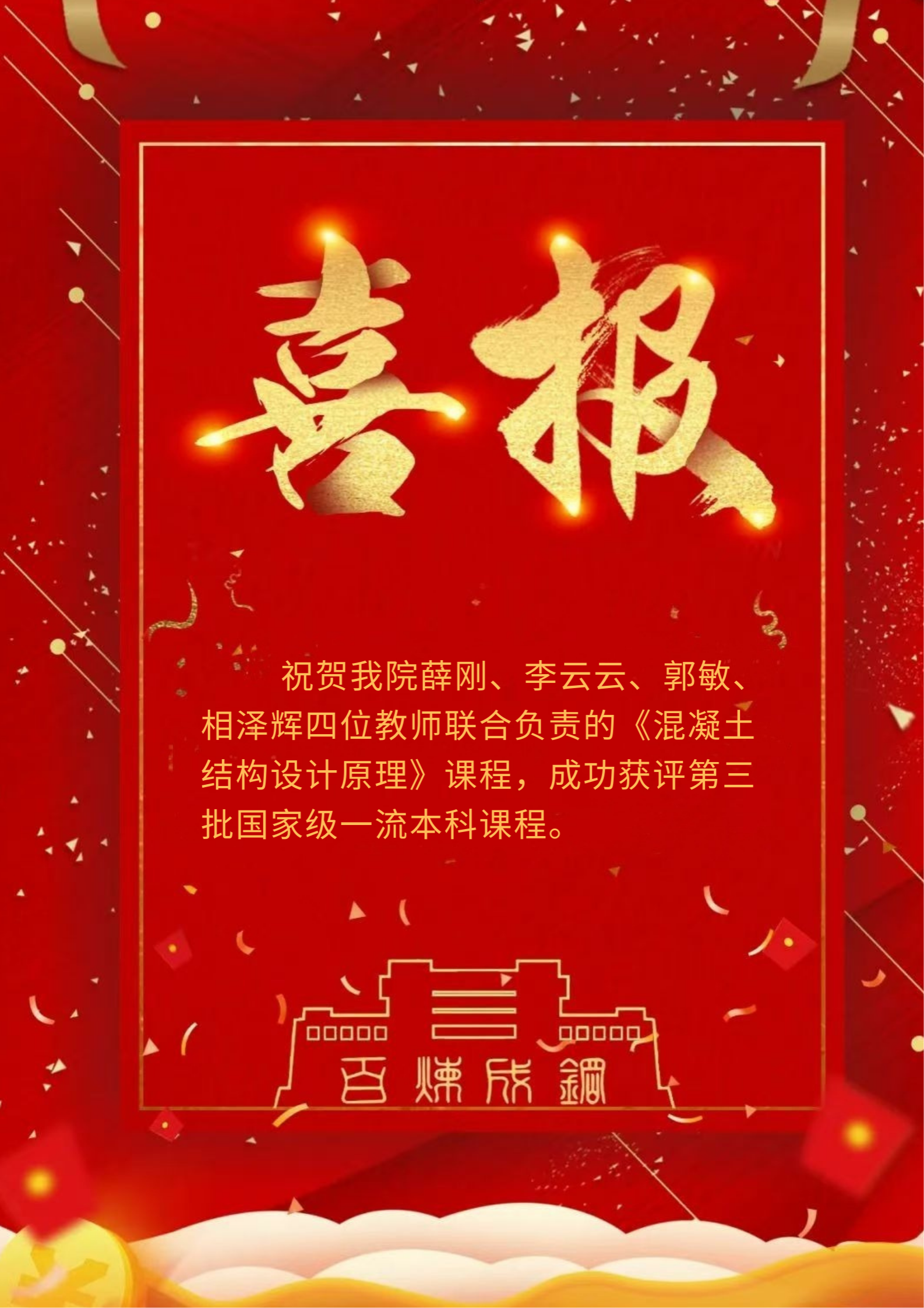 薛刚、李云云、郭敏、相泽辉四位教师联合负责的《混凝土结构设计原理》课程,凭借优质的教学内容、创新的教学模式及显著的教学成效,成功获评第三批国家级一流本科课程。截至目前,十博体育
