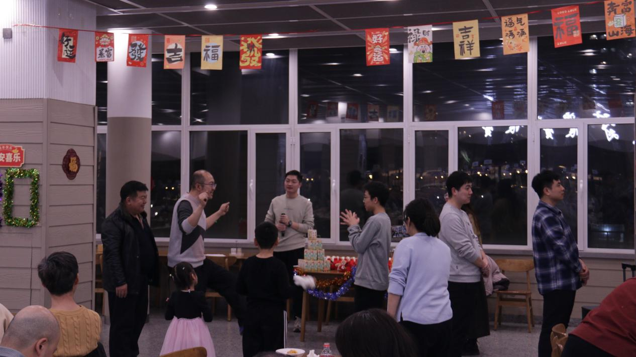 在用餐过程中,老师们还参与了趣味横生的互动游戏。在“你划我猜”游戏环节,老师们化身“灵魂表演者”,用夸张的肢体动作和生动的表情传递词语信息。一个个经典词语在老师们的演绎下妙趣横生,猜对时的欢呼与猜错时的笑声交织在一起,热闹非凡。