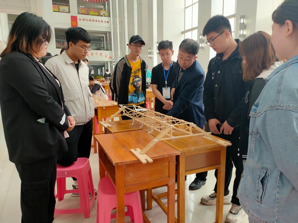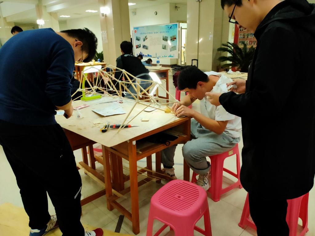 经过约三个小时的加载,各组选手所制作的模型在加载台上交出了自己最满意的答卷。虽然个别组也存在遗憾,但是只要努力拼搏,成功就在不远,只要用心去拼,就会有所收获,不要轻言放弃,记住永不言败。