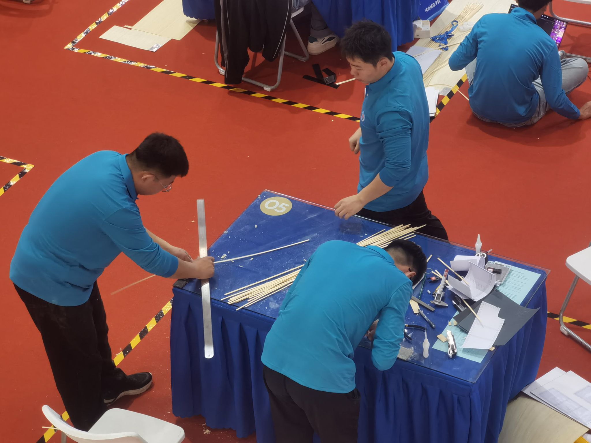 此次竞赛赛题是利用竹杆、竹皮材料制作一类似塔式结构物,整个制作过程需要选手们在现场完成连续12个小时的制作,并在竖向、横向以及振动等多重荷载的作用下进行检验,以模型最轻,通过荷载最大,加速度、位移不超限作为最终评判标准。整个模型制作及加载过程是对选手们的专业知识、创新精神、团队协作能力的考验,也是工匠精神的重要体现。