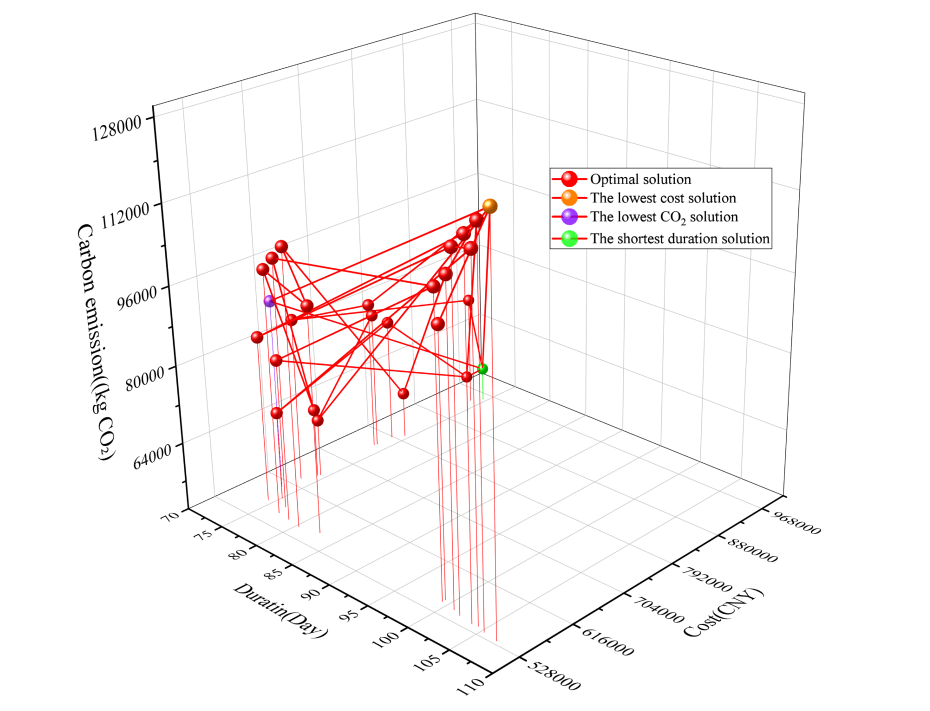 图6. 综合三个目标的帕累托前沿解集