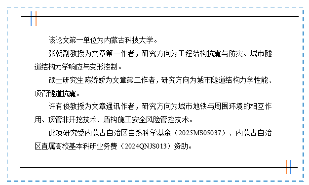 隧道智慧建养与深地储能技术团队张朝副教授在Tunnelling and Underground Space Technology期刊(JCR一区,中科院一区TOP,IF=7.4)发表题为“Shear performance of prefabricated utility tunnel joints considering the effect of connectors”(DOI: //doi.org/10.1016/j.tust.2026.107538)的研究成果。