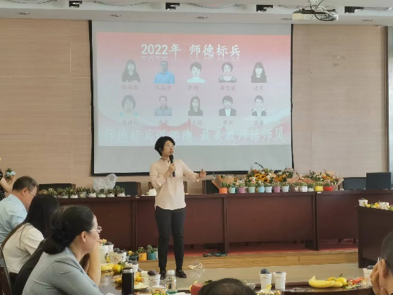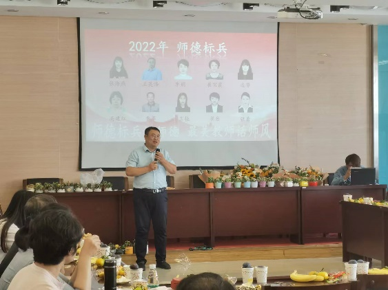 领导为他们颁发师德标兵奖,并对获奖教师表示祝贺。
