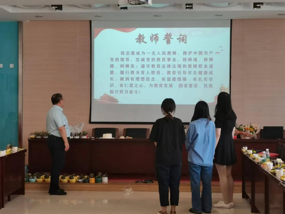 ,“我志愿成为一名人民教师,拥护中国共产党的领导,忠诚党的教育事业,铸师魂、修师德、树师表;遵守教育法律法规和教室职业道德,履行教书育人职责,教育引导学生健康成长,做到有理想信念、有道德情操、有扎实学识、有仁爱之心,为教育发展、国家繁荣、民族振兴努力奋斗!”他们激情饱满地进行了新入职教职工宣誓,立下铿锵誓言,并且表示将力争不负韶华,在“教书育人”的道路上踔厉奋发,笃行不怠,向10BET