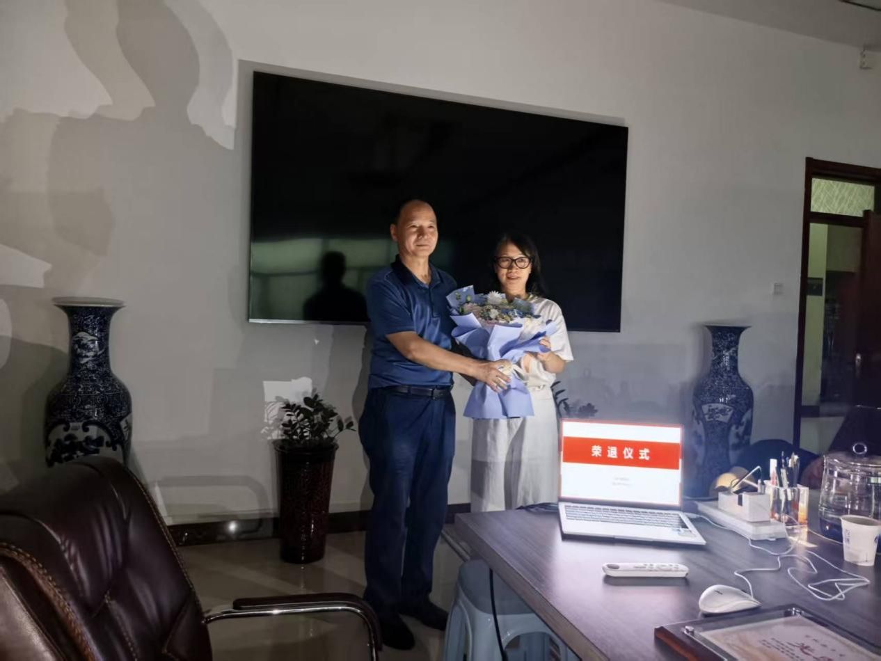 青年教师代表向两位教师送上鲜花,表达了全体老师的不舍之情,并真诚地祝愿他们身体健康、心情愉快、家庭幸福、万事如意。