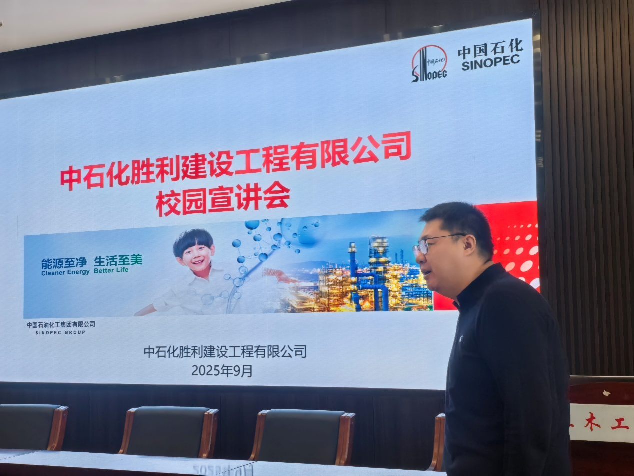 2025年10月22日上午9时,中石化胜利建设工程有限公司校园宣讲会在逸夫楼B404举办。