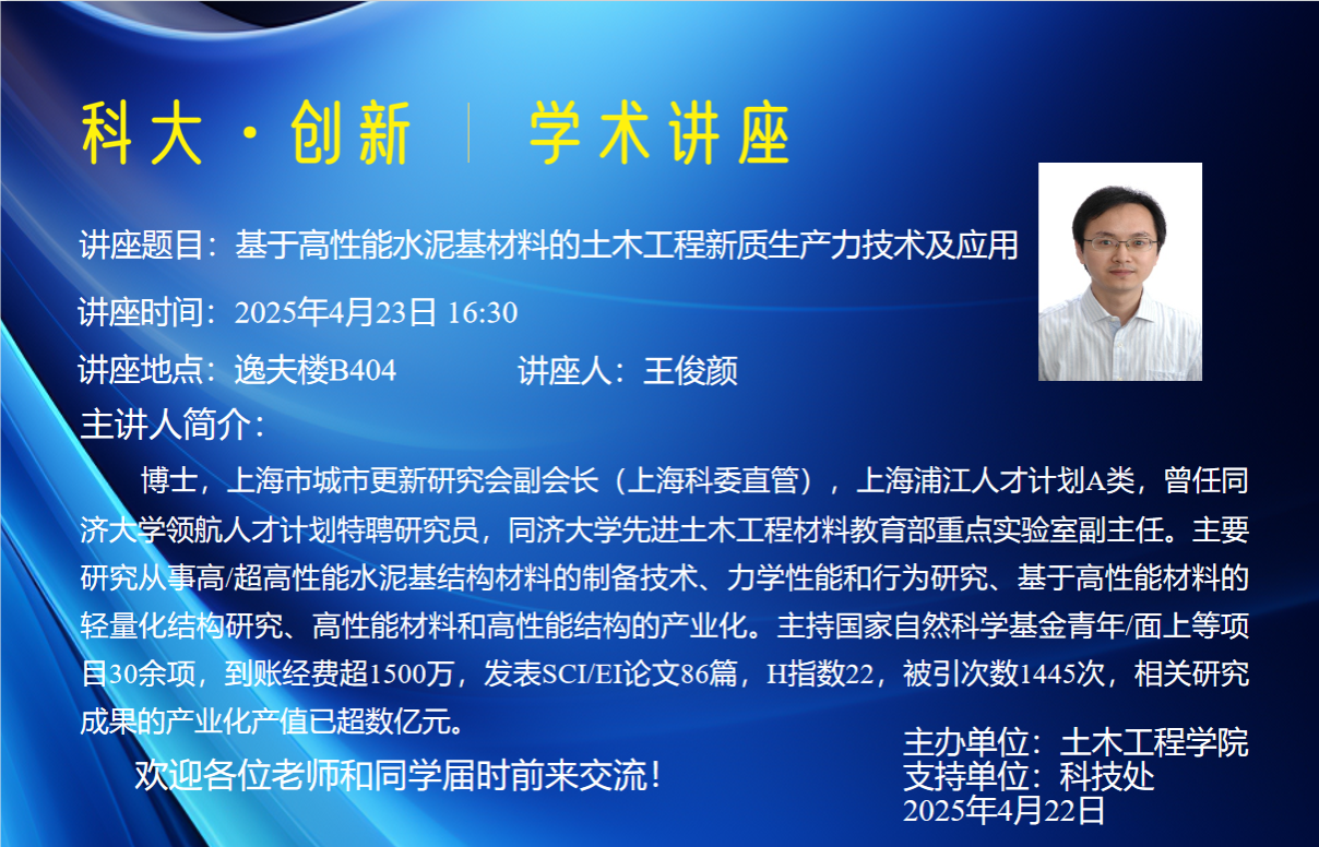 讲座题目:基于高性能水泥基材料的土木工程新质生产力技术及应用