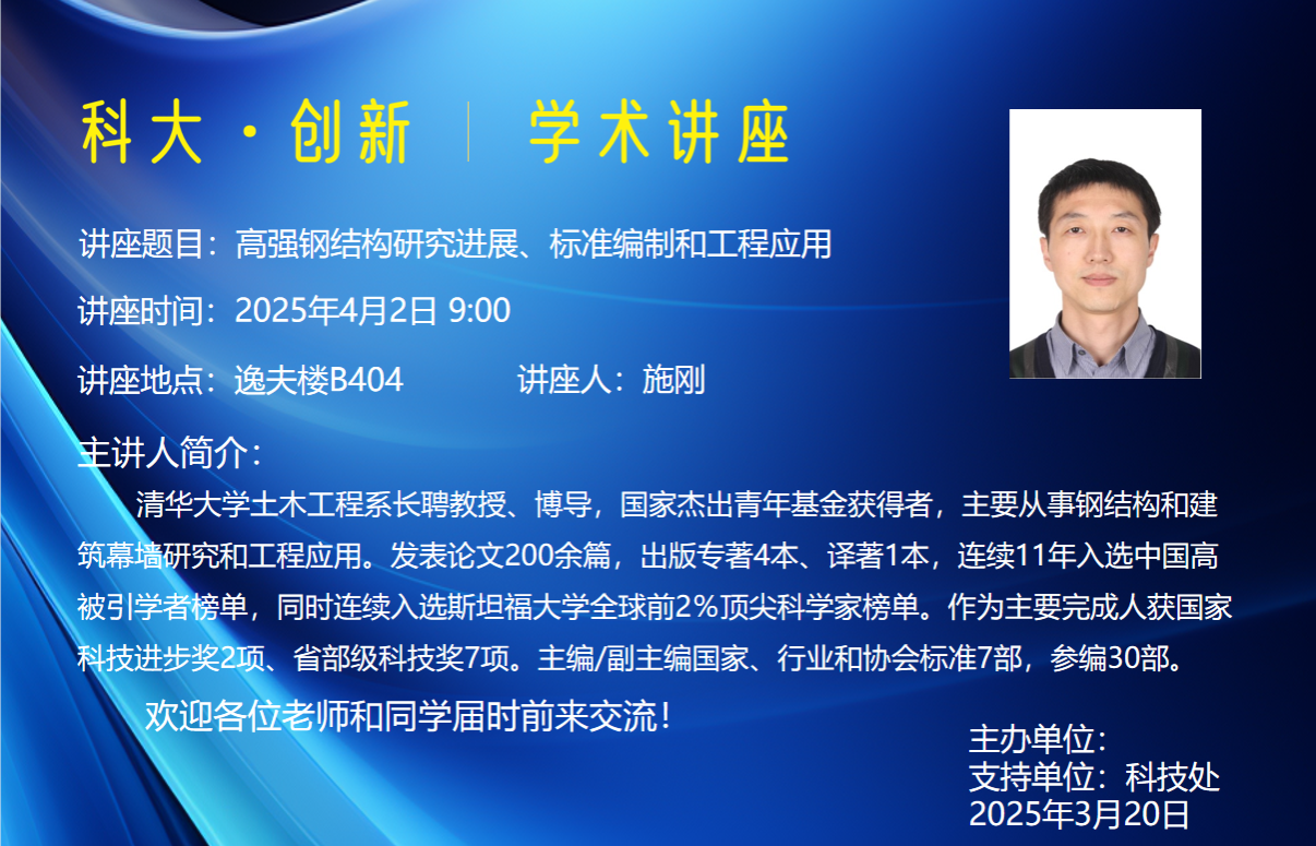十博体育 名师名家讲坛系列讲座三十一——高强钢结构研究进展、标准编制和工程应用