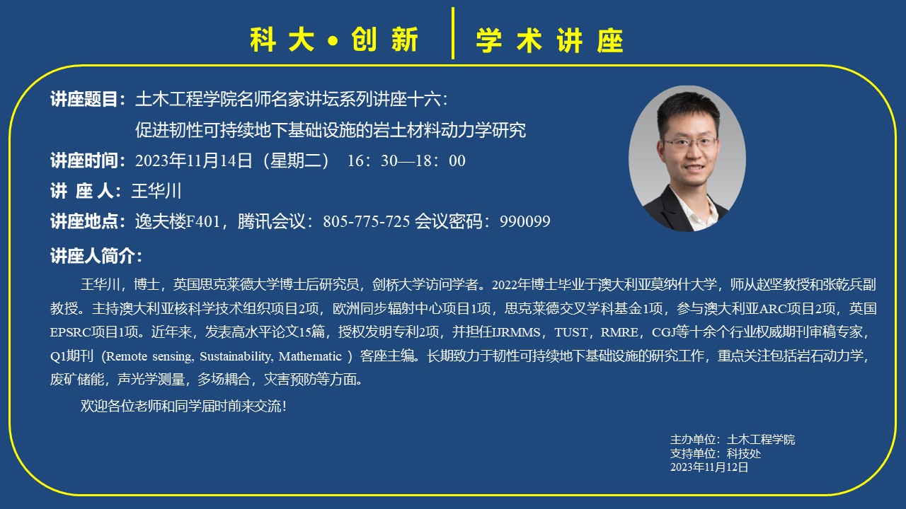 讲座时间:2023年11月14日(星期二)16:30-18:00