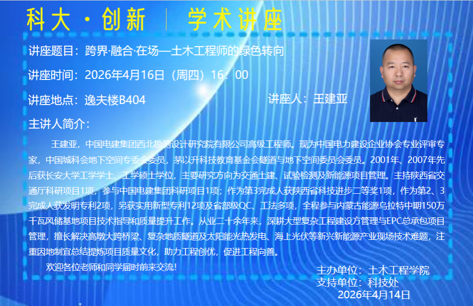 讲座题目:跨界·融合·在场—土木工程师的绿色转向
