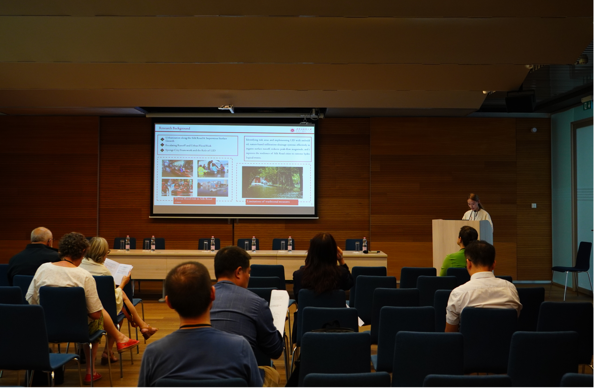 丁超副教授、匈牙利农业与生命科学大学Ildikó Rudnák教授、György Kerezsi副教授的指导下共同完成。聚焦于全球气候变化与人类社会的互动关系,从历史视角与现代计算机技术相结合的角度,探讨了城市水资源治理的演变路径与未来应对策略。研究以丝绸之路城市为例,探讨气候变化对城市水安全的影响,并提出融合历史智慧与人工智能结合的新型治理框架。报告回顾了从古代坎儿井到东方运河等历史水治理经验,指出传统社会在应对干旱与内涝中形成了可持续的地方知识体系。研究进一步比较了东欧与东亚现代城市的治理模式,分析多层级协调、公众参与与制度韧性等关键因素。在方法上,采用多目标优化算法,构建多维数据模型识别城市内涝风险的主要影响因素,实现了决策的多元优化。研究提出应通过“历史经验+数据智能”的融合路径,提升城市水资源治理的战略性与适应力,为全球气候变化下的城市可持续发展提供创新思路。她的汇报得到了来自中国科10BET