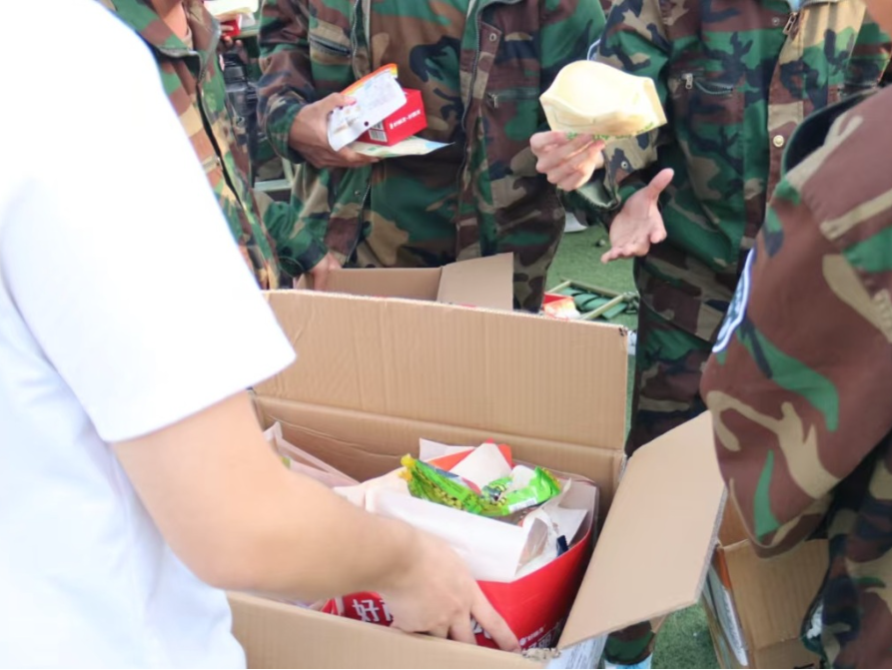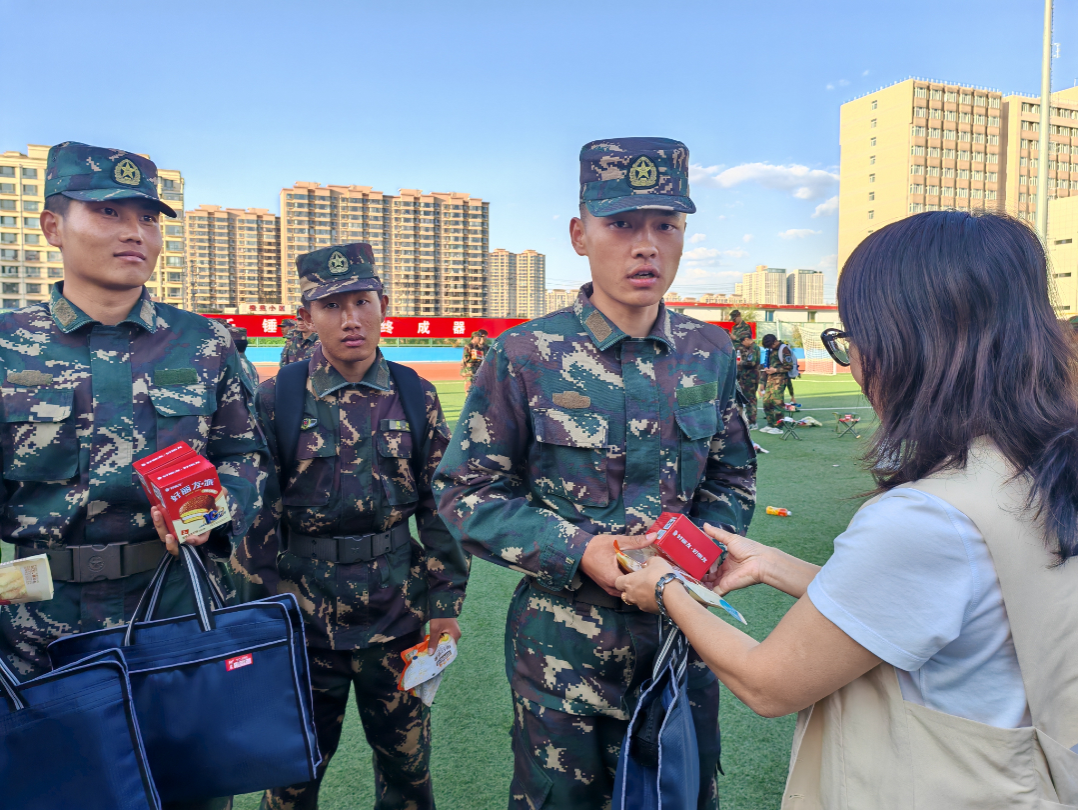 老师带着精心准备的慰问品走进训练场,为坚守在训练一线的教官和新生们送去关怀与鼓励,让青春的迷彩方阵里涌动着温暖的“土木温度”。
