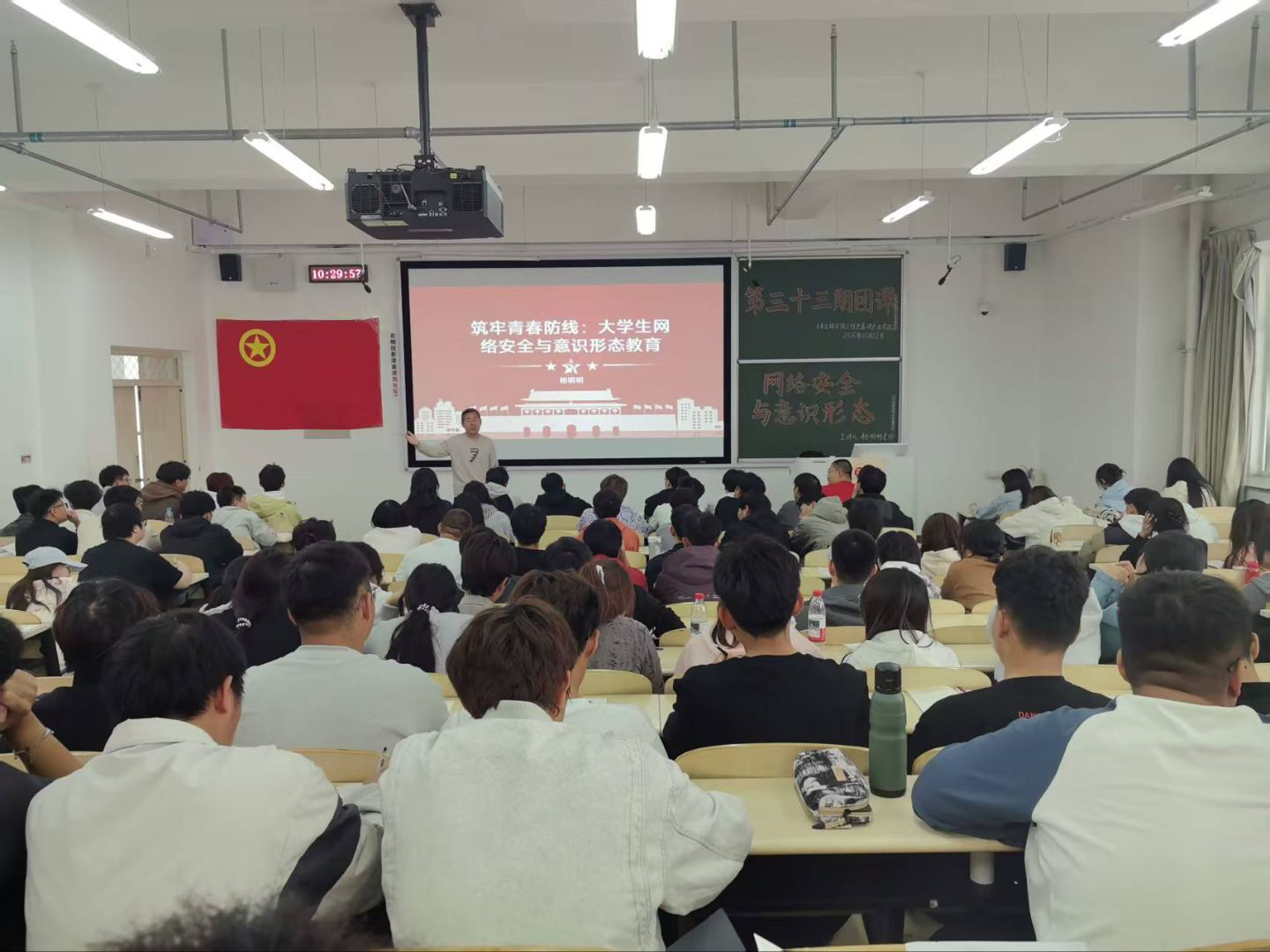 第三十三期团课第二讲开展于20251012日,位于逸夫楼G401教室,在杨明明老师的引领下,学习第二讲:网络安全与意识形态,杨老师告诫青年大学生应加强网络安全意识,守护自身网络安全。